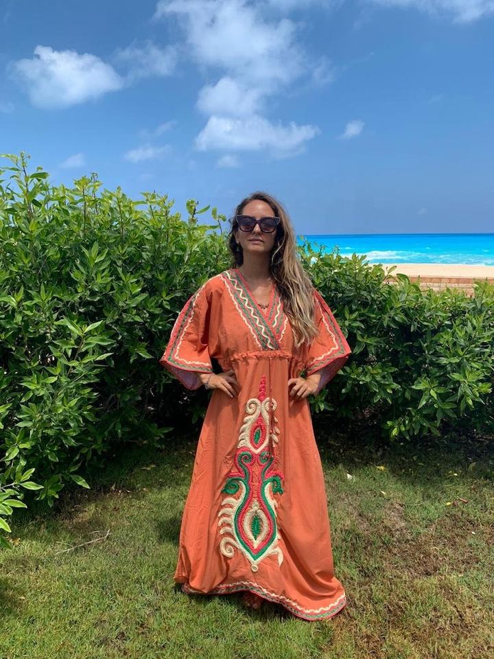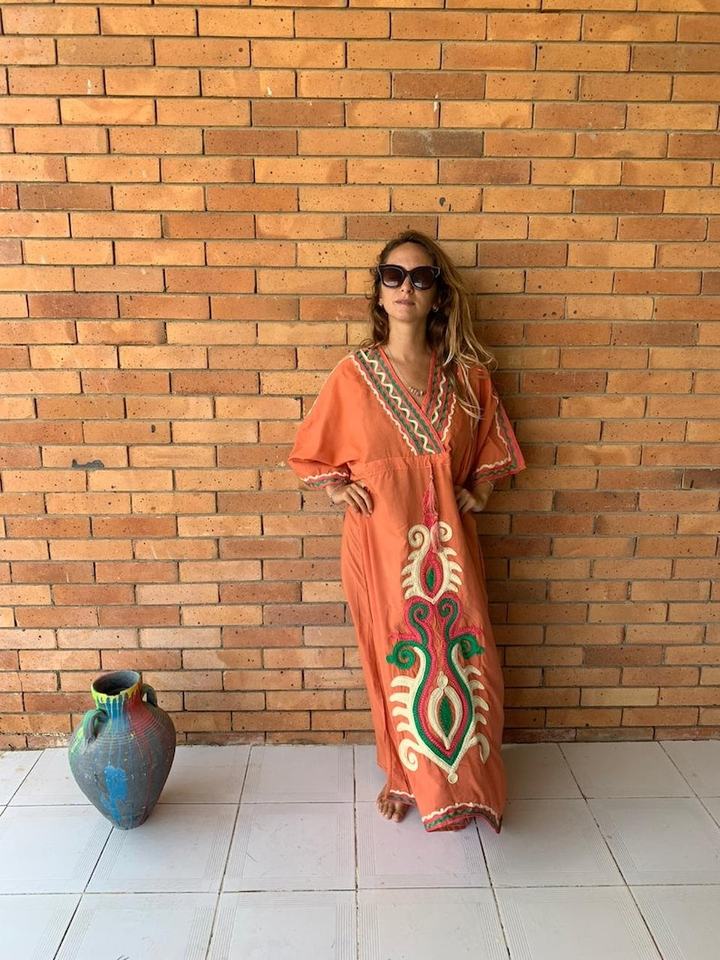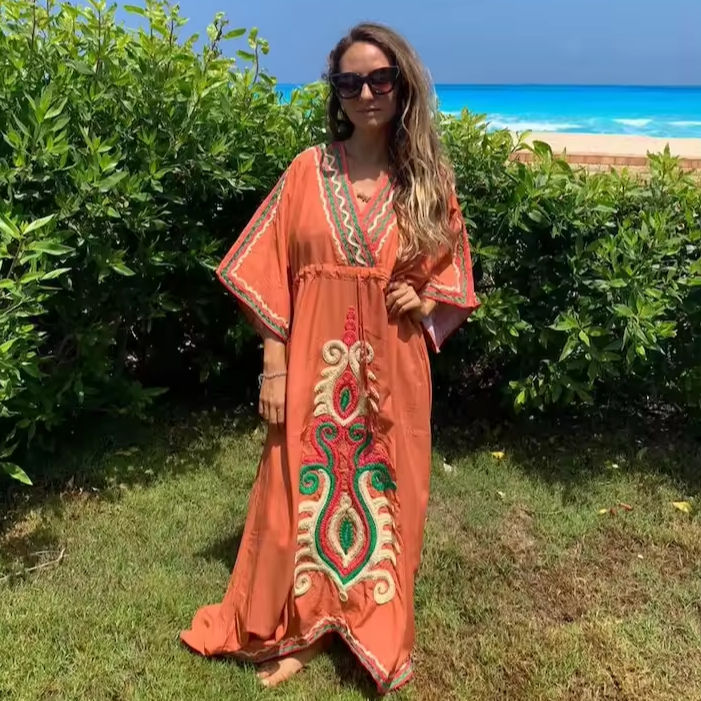 Orange Women's Girls' Vintage SUZANI Dress Stylish Floral Print Woven Waistline Natural Beautiful Zippers Tassel Digital