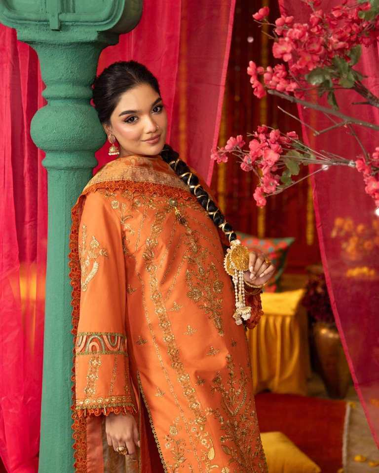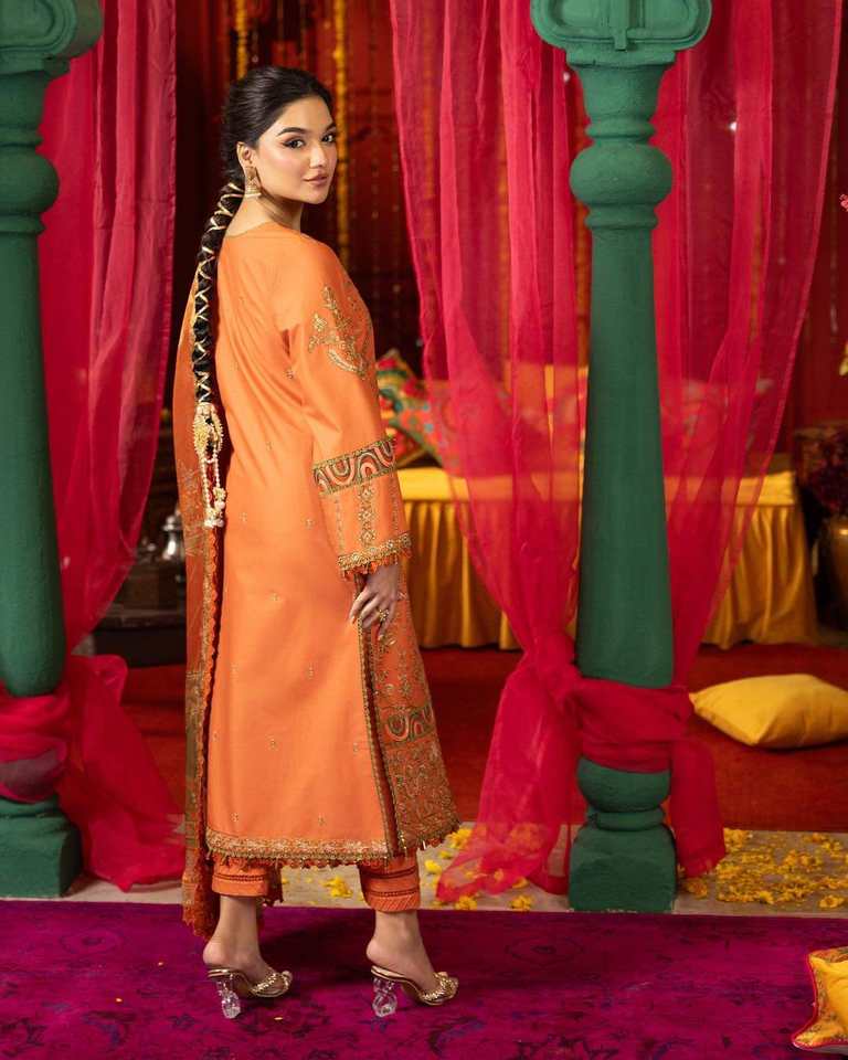 ชุดแต่งงานปักลายสีส้มแบบแพทช์เวิร์ค รุ่นที่สวยที่สุดสำหรับสุภาพสตรีทั่วโลก โดย WS International ปากีสถาน