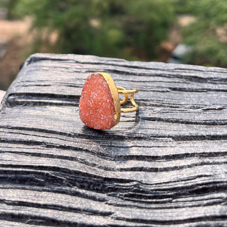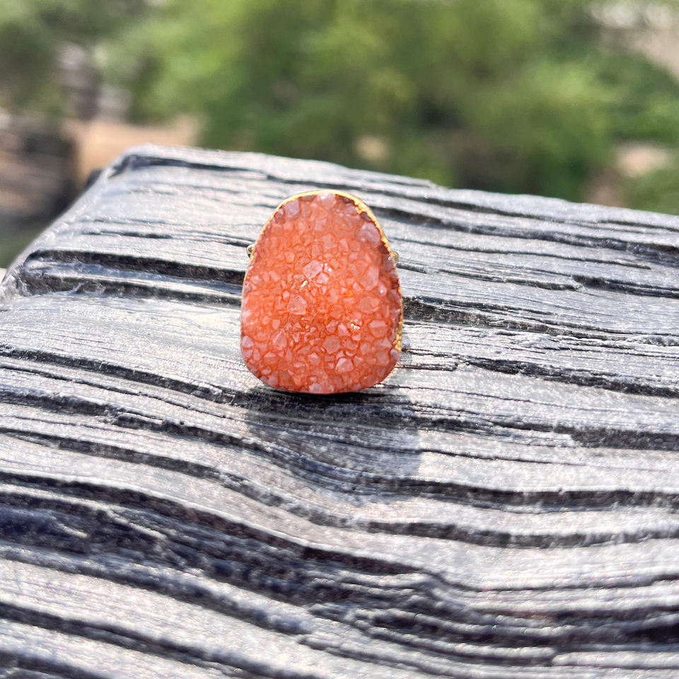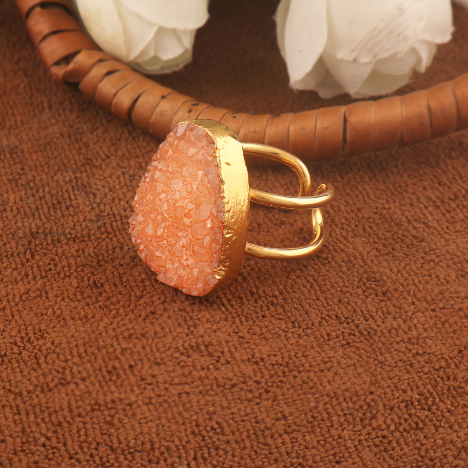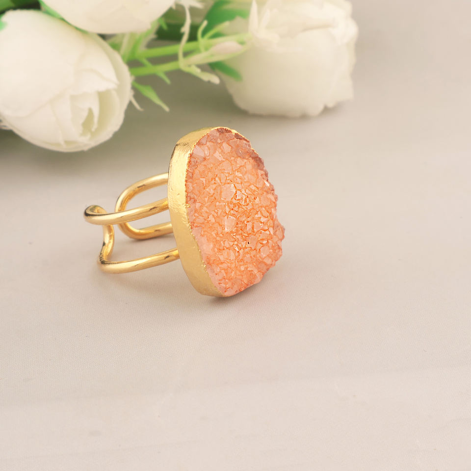 แหวนดรูซี่สีส้มน้ำตาลแหวนทองชุบทองปรับได้แหวนดีไซน์เนอร์ขนาดใหญ่แหวนดรูซี่สำหรับสวมใส่ปกติเครื่องประดับ unisex