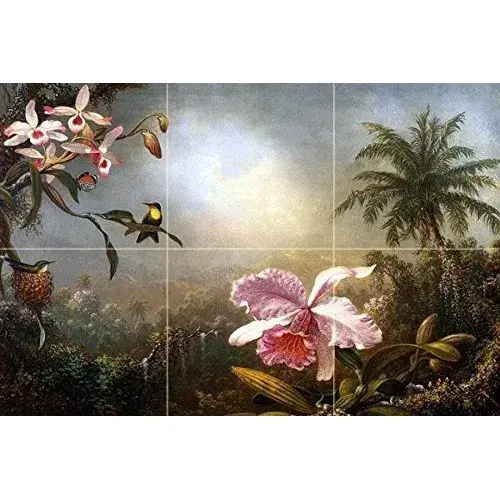 จิตรกรรมฝาผนังกล้วยไม้ดอกไม้สีชมพูสำหรับห้องครัวและห้องน้ำหินอ่อนกระเบื้องเซรามิคผนังกันน้ำมันกระเด็น