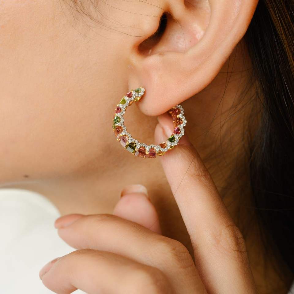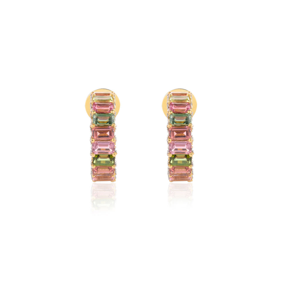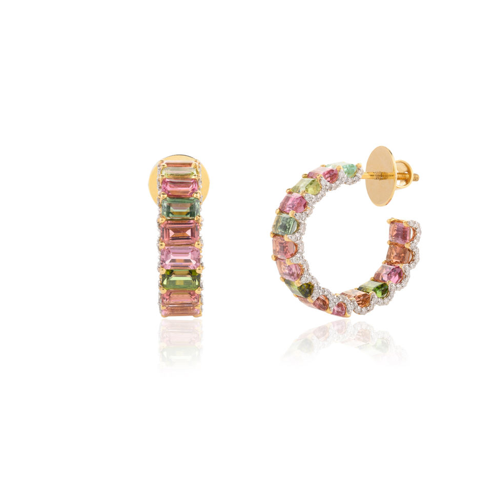 สั่งซื้อที่สวยงามทําด้วยมือทัวร์มาลีนธรรมชาติ 100% และเพชรต่างหู C-Hoop 14 พันเครื่องประดับทองเหลืองทึบสําหรับผู้หญิงสาว