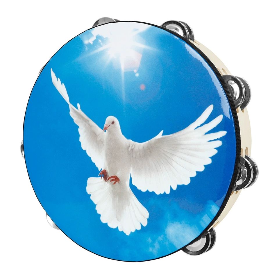 กลองแทมบูรีนแบบถือสองชั้น ขนาด 10 นิ้ว ลายนกพิราบสัญลักษณ์แห่งสันติภาพ ยี่ห้อ Orff Percussion