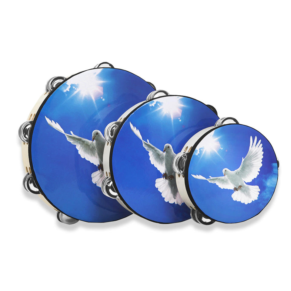 เครื่องดนตรีออร์ฟ กลองแทมบูรีนลายพิราบแบบสองแถว ชุดกลองมือถือสำหรับการเต้นรำ เพลง และการแสดง