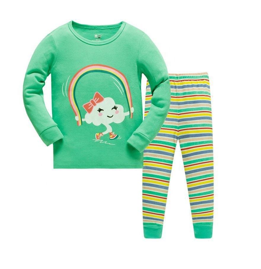 ชุดนอนเด็กผู้หญิงผ้าเทอร์รี่ออร์แกนิค 100% ผ้าฝ้าย ระบายอากาศได้ดี น่ารัก ลายเมฆสีชมพู แขนยาว แบบสองชิ้น สามารถปรับแต่งได้