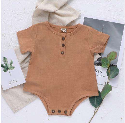 ชุดเด็กออร์แกนิค ได้รับการรับรองมาตรฐาน GOTS บอดี้สูทเด็กผู้ชาย ชุดรอมเปอร์ผ้าลินินแบบเปิดหลัง