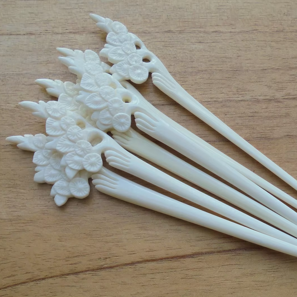 ปิ่นปักผมแกะสลักจากกระดูกแบบออร์แกนิก | กิ๊บติดผมแบบดั้งเดิม