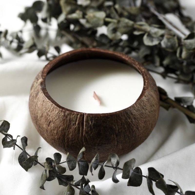 เทียนหอมเปลือกมะพร้าวออร์แกนิค ทำจากขี้ผึ้งถั่วเหลืองธรรมชาติ ทำด้วยมือ สำหรับกลิ่นหอมในบ้านและเป็นของขวัญ