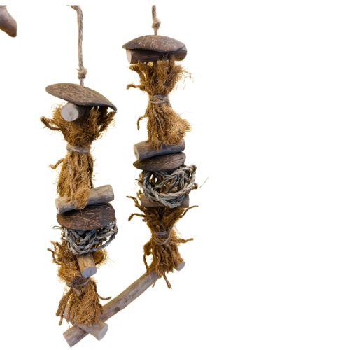 ของเล่นนกไม้กาแฟออร์แกนิก ปลอดสารเคมี 100% | ของเล่นธรรมชาติสำหรับการหาอาหารและขัดปากนก