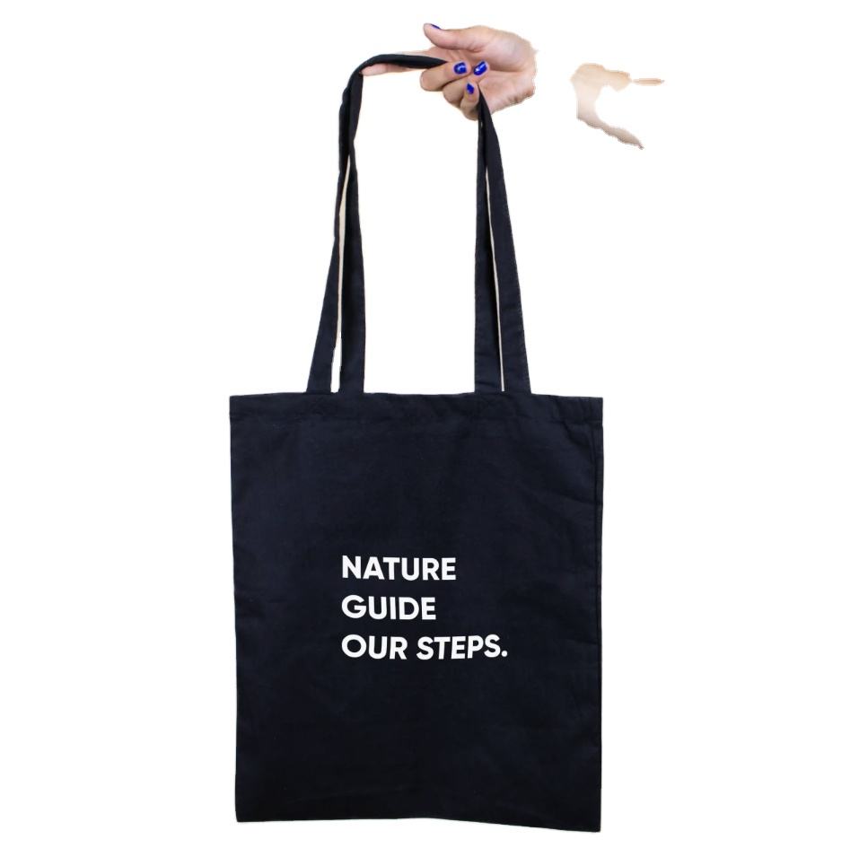 ถุงผ้าฝ้ายออร์แกนิค 180gsm สีดำ พิมพ์ลายซิลค์สกรีนแบบโมเดิร์น สำหรับชุดของขวัญ บรรจุภัณฑ์ทันสมัยรักษ์โลก
