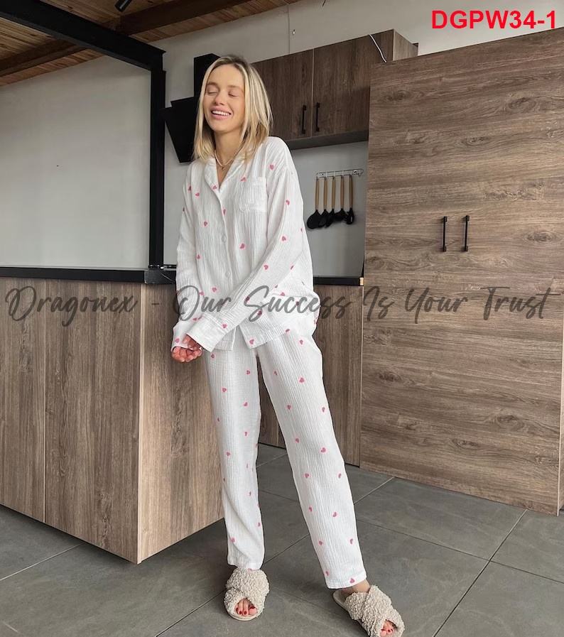 ชุดนอนมัสลินผ้าฝ้ายอินทรีย์ย่นแนบกับเสื้อเชิ้ตสายสปาเก็ตตี้พร้อมการออกแบบลายหัวใจน่ารักมากในฤดูร้อนปี 2024