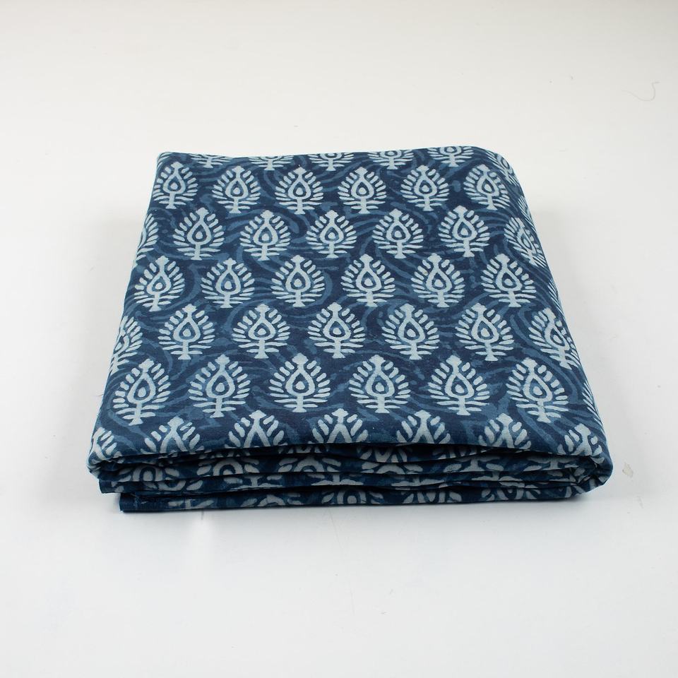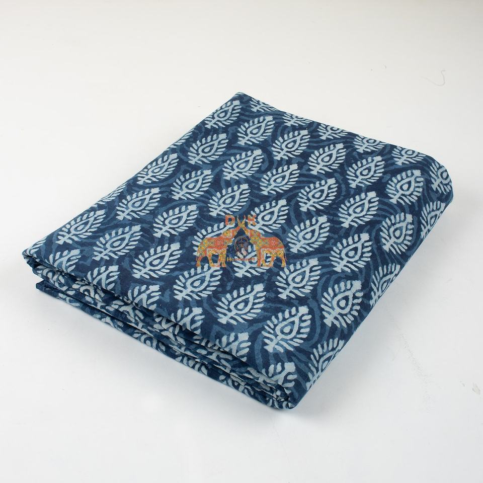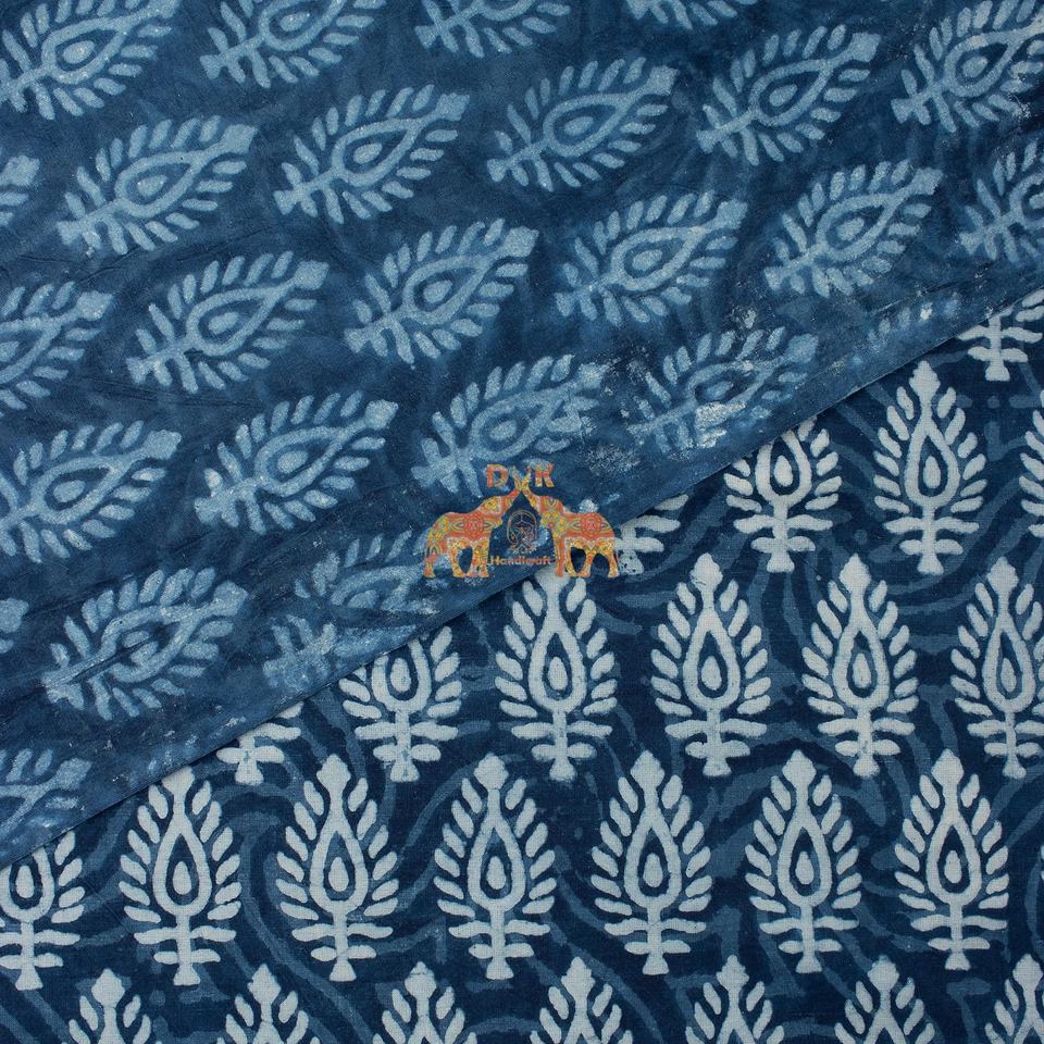 ผ้าฝ้ายออร์แกนิคย้อมครามด้วยมือ ลายดอกไม้พิมพ์ลายธรรมชาติ ผลิตในอินเดีย วัสดุคุณภาพสูงสำหรับเสื้อผ้า
