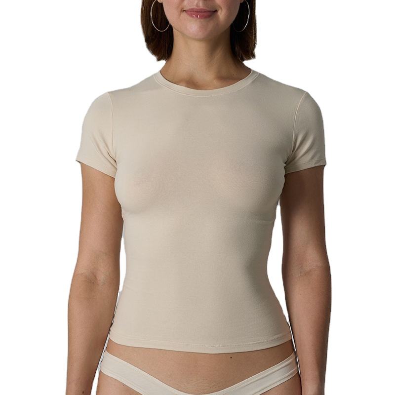เสื้อยืดครอปผ้าฝ้ายออร์แกนิคเนื้อนุ่มยืดหยุ่น 90% คอตตอน / 10% อีลาสเทน สำหรับออกกำลังกาย ผู้หญิง เซ็กซี่
