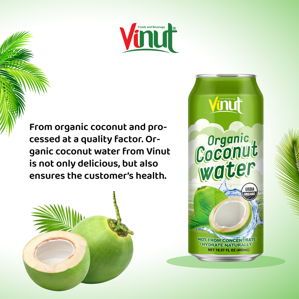 เครื่องดื่มออร์แกนิกน้ำมะพร้าวออร์แกนิก490มล. (ไม่มีสมาธิ) ผลิตในเวียดนาม