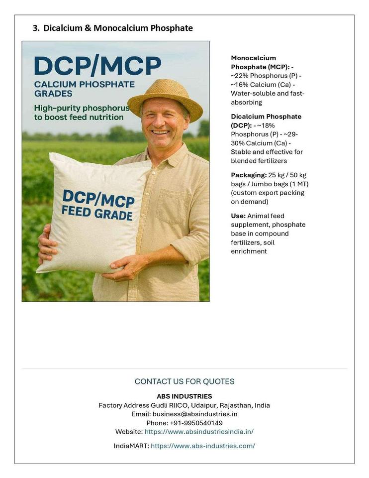 ปุ๋ยอินทรีย์ไดแคลเซียมและโมโนแคลเซียมฟอสเฟต แหล่งฟอสฟอรัสสำคัญสำหรับอาหารสัตว์และโภชนาการพืชผล