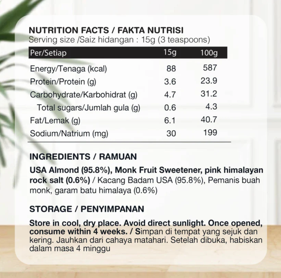 Cashew Nuts, Sunflower OIl, Monk Fruitส่วนผสมหลัก