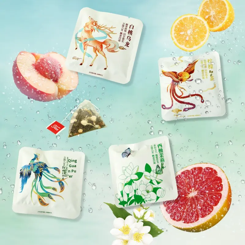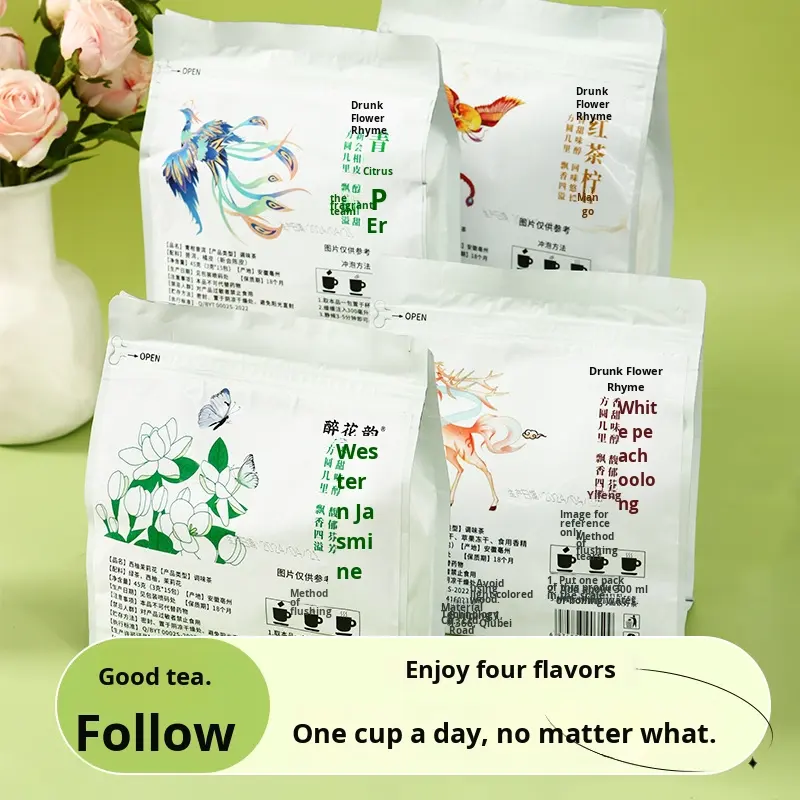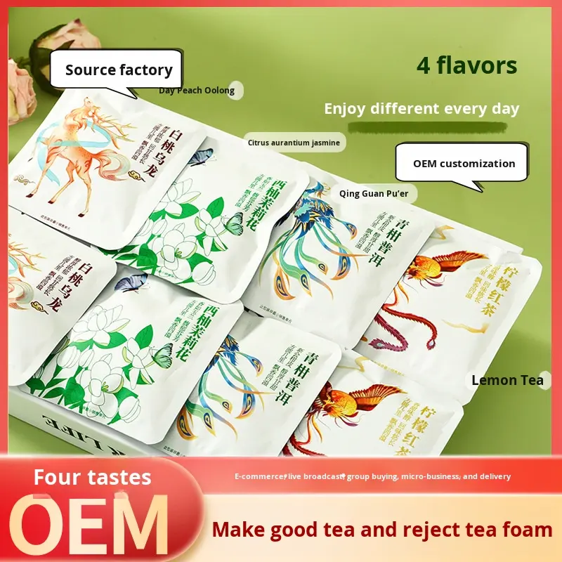ถุงใส่ชากลิ่นส้มออร์แกนิกสีเขียวลูกพีชอูหลงกลิ่นมะลิผสมชาเย็นร้อนสำหรับออฟฟิศขนาดเล็ก