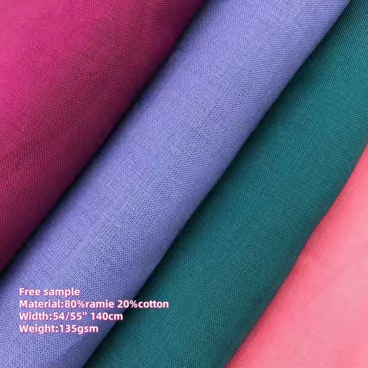 ผ้าลินินอินทรีย์21*21ธรรมดาเอนไซม์ล้างรามีผ้าฝ้ายผสมสำหรับชุด/เสื้อริ้วรอยขายส่งฟรีสำหรับเสื้อผ้า
