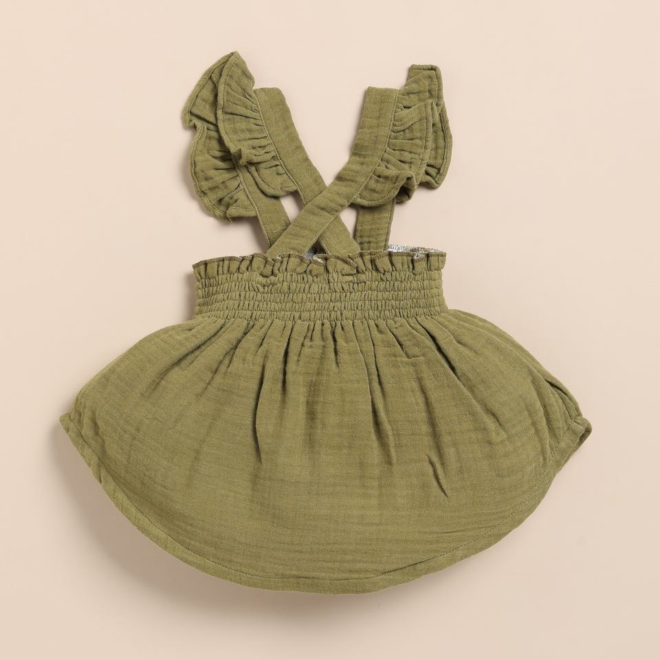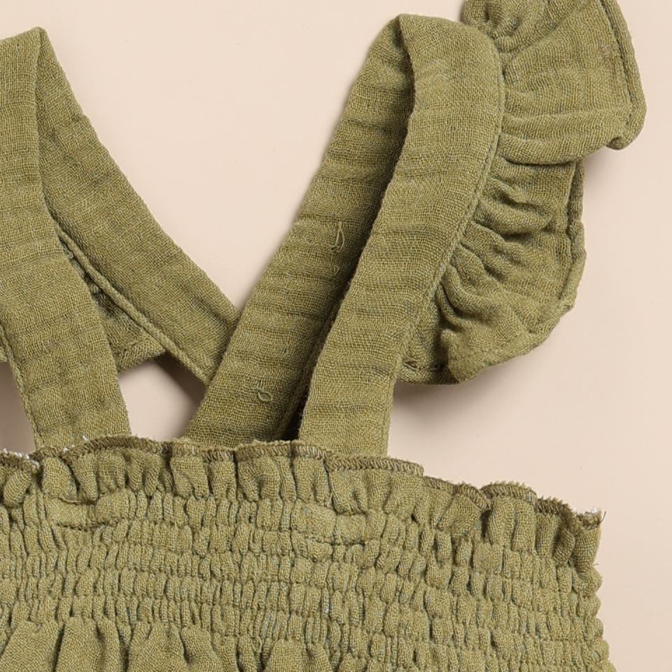เสื้อแขนกุดผ้ามัสลินออแกนิกสำหรับเด็กทารกเสื้อทรงหลวมสีมะกอก