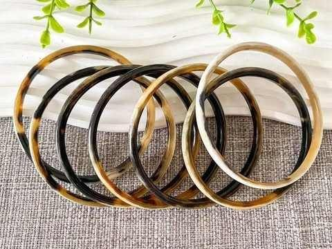 กำไลข้อมือทรงกลมทำจากเขาสัตว์แบบออร์แกนิกธรรมชาติทันสมัย ผลิตโดยช่างฝีมือ งานฝีมือที่ยั่งยืน ทำด้วยมือ ของตกแต่ง ของขวัญจากอินเดีย