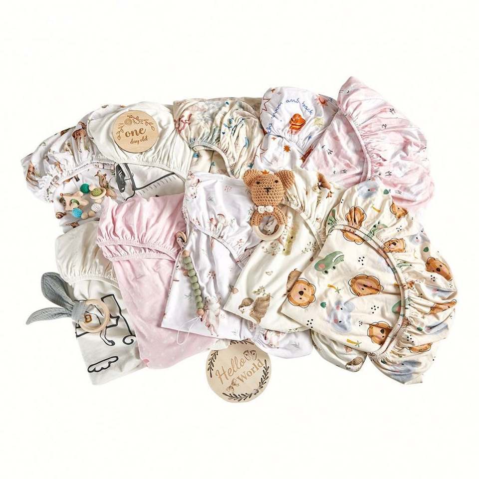 ผ้าปูที่นอนเด็กอ่อนแบบออร์แกนิค ลายพิมพ์เรียบ ผ้าฝ้ายเนื้อนุ่ม พับได้ รูปทรงวงรี สำหรับเตียงเด็กอ่อน/เปลเด็ก
