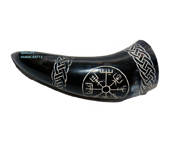 อินทรีย์ฮอร์นแกะสลักไวกิ้งขัด10-15" ฮอร์นดื่มนอร์ดิกนอร์สขนาด200-300มล. จากอินเดียโดยงานฝีมือคุณภาพ
