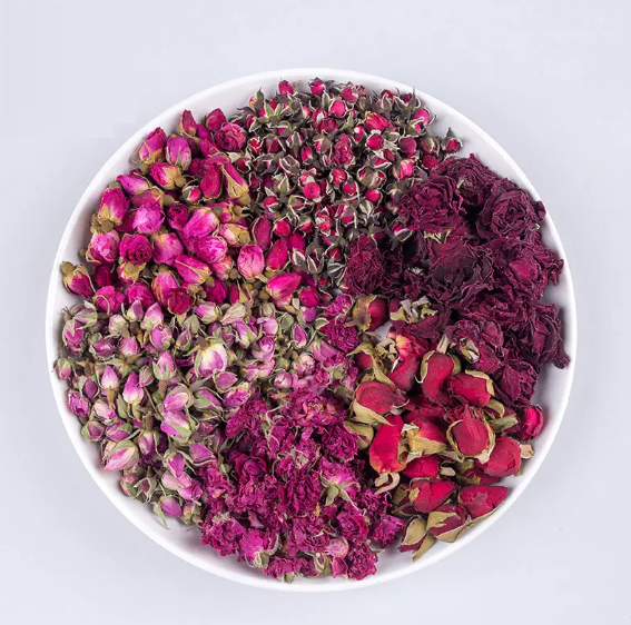 กลีบกุหลาบแห้งธรรมชาติออร์แกนิกชาสมุนไพรในถุงกุหลาบตูมฝรั่งเศษ