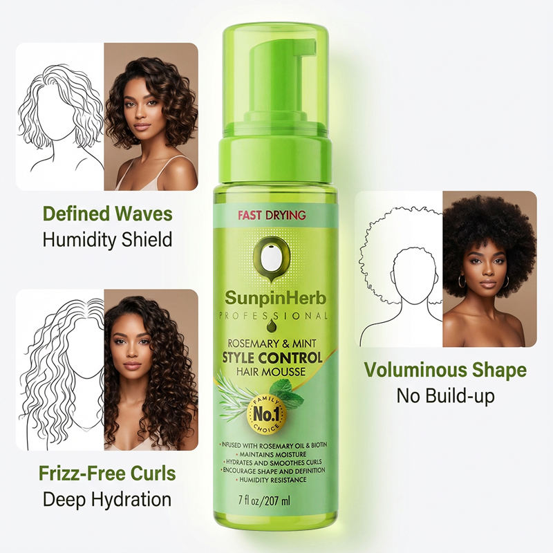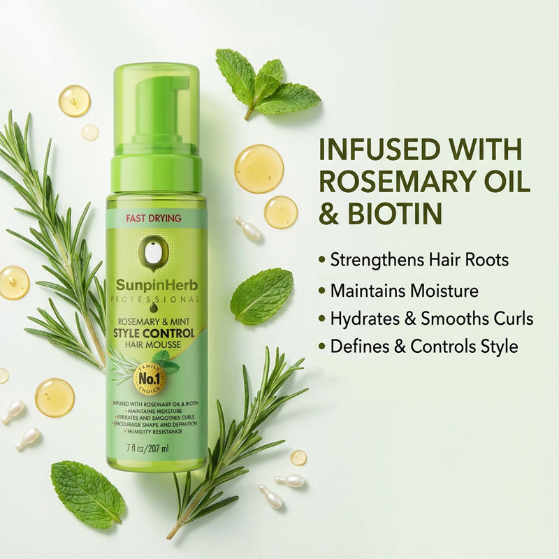มูสจัดแต่งทรงผมโรสแมรี่มิ้นท์ สูตรแห้งเร็ว สำหรับควบคุมลอนผม ลดผมชี้ฟู และจัดแต่งทรงผมให้โดดเด่น