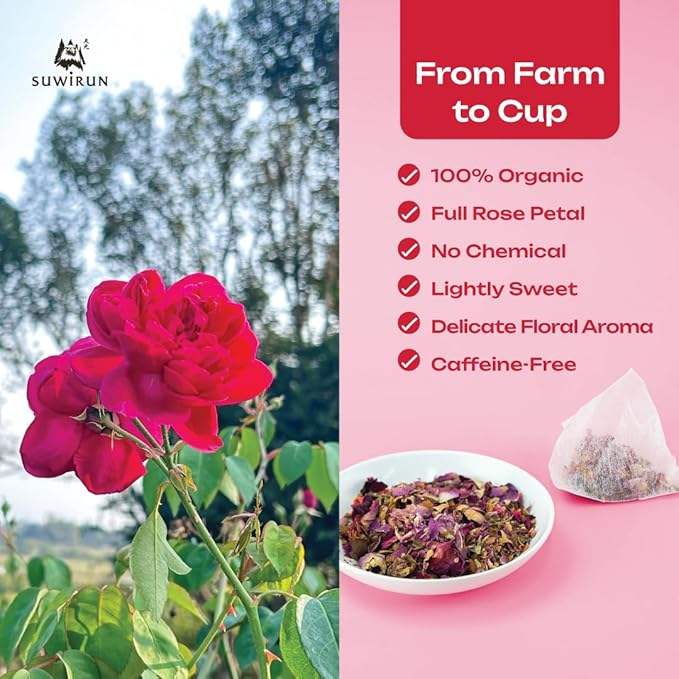 ชาดอกกุหลาบออร์แกนิค 10 ซอง ชาดอกไม้ ไทยแลนด์ ธรรมชาติ ไม่มีน้ำตาล สารกันบูด เครื่องดื่มเพื่อสุขภาพระดับพรีเมียม อายุการเก็บรักษา 12 เดือน