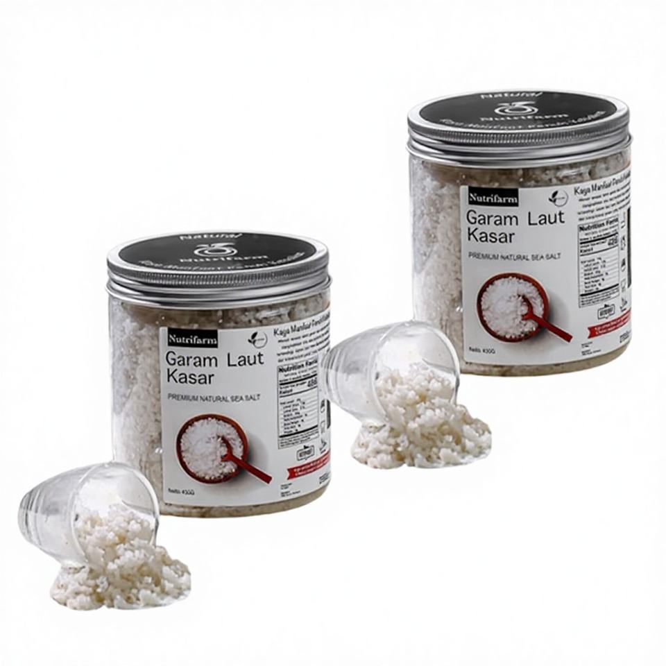 นูทริฟาร์ม เกลือทะเลออร์แกนิก ไม่ผ่านการกลั่นบริสุทธิ์ 100% คุณภาพระดับกูร์เมต์ 450 กรัม ขนาดปรับแต่งได้ สำหรับใช้ในการทำอาหาร จากอินโดนีเซีย