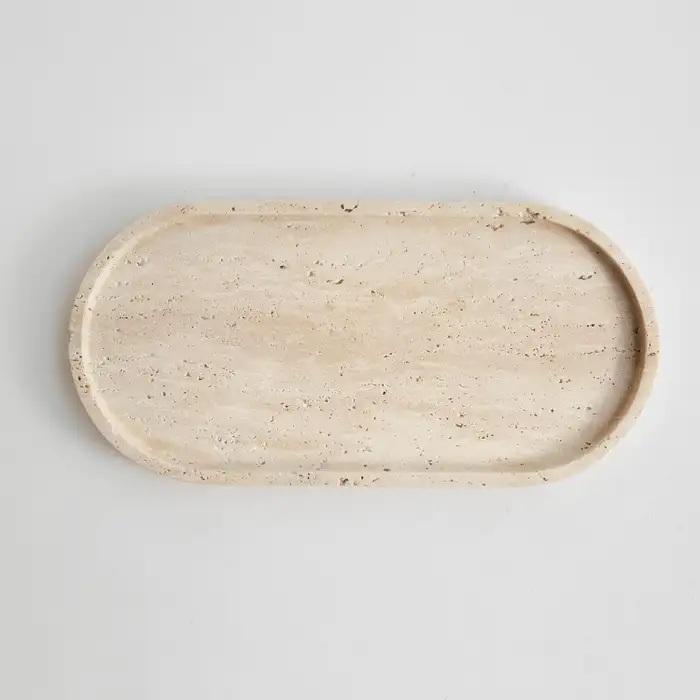 ถาดหินทราเวอร์ทีนรูปทรงอิสระแบบออร์แกนิก พร้อมผิวสัมผัสเรียบเนียนเป็นธรรมชาติ สำหรับตกแต่งบ้านสไตล์โมเดิร์นและเพิ่มความหรูหรา