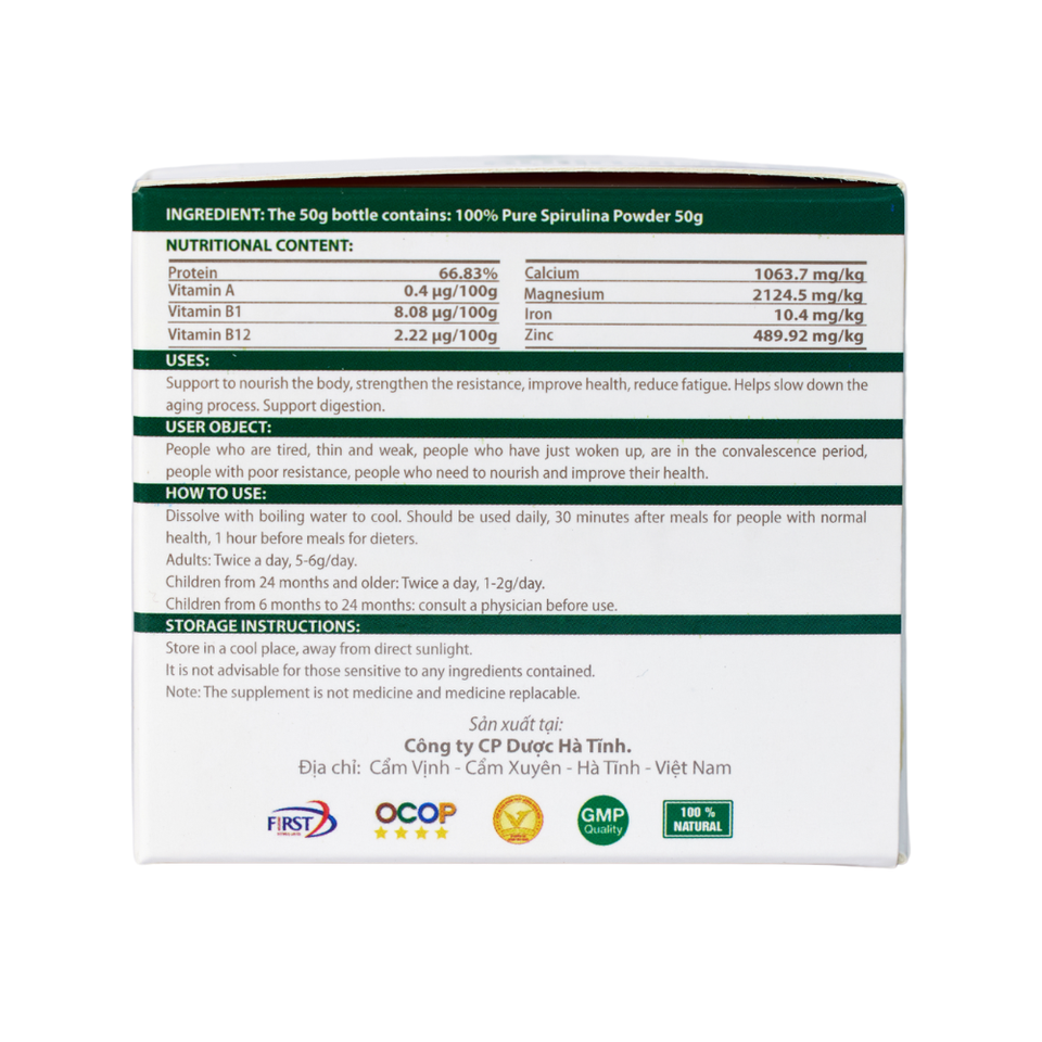 Product Specification:Protein, Phycocyanin, Vitamin (A,B,C,D,E,PP), others