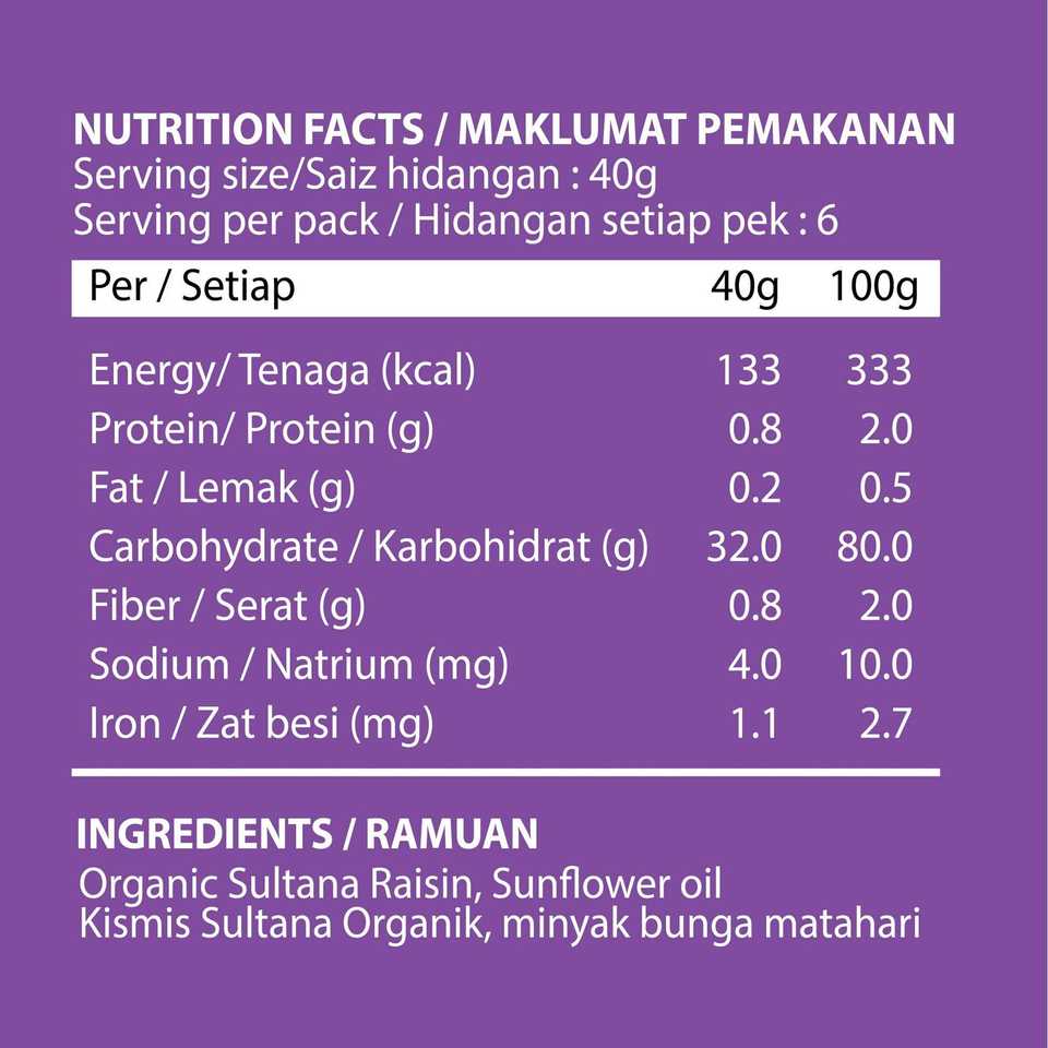 ลูกเกดซัลตาน่าออร์แกนิค 250 กรัม 1 แพ็คเท่านั้น