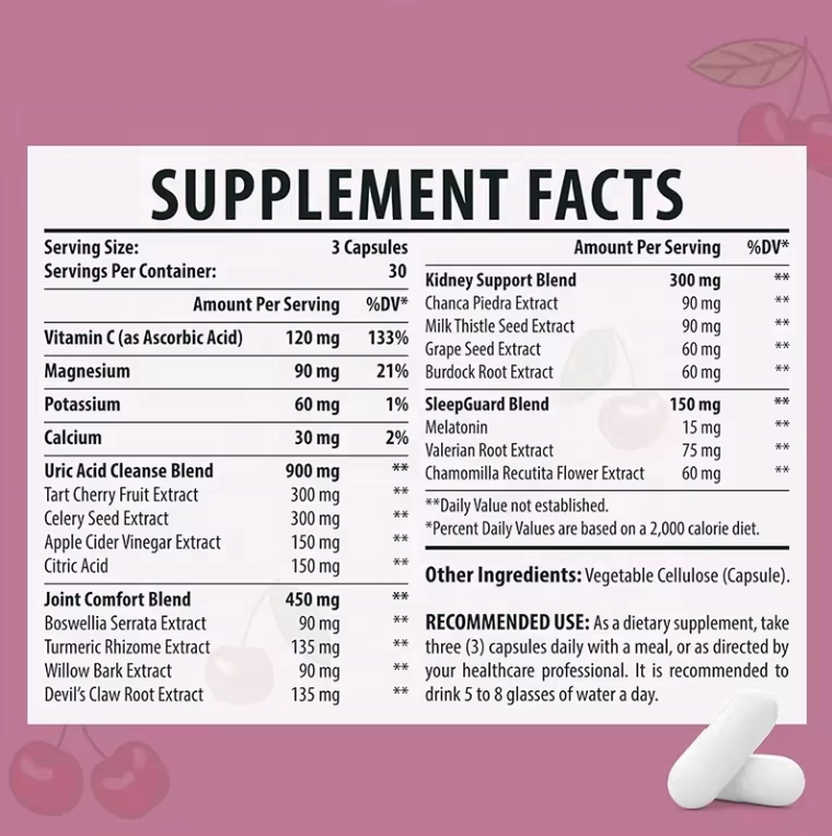 ชื่อผลิตภัณฑ์:แคปซูลทำความสะอาดกรดยูริค