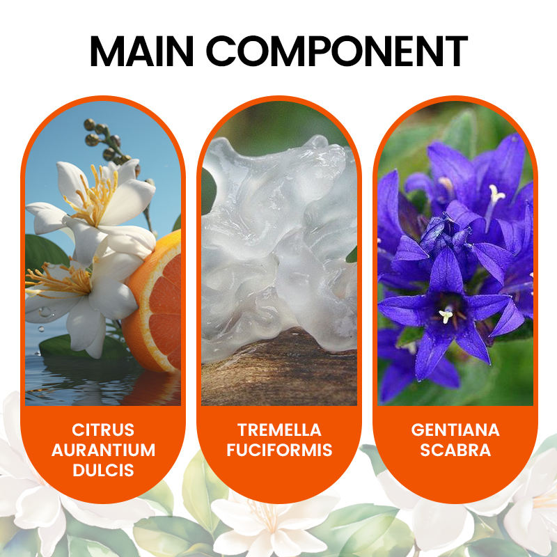 Vitamin E, Squalane, Vitamin C, Hyaluronic Acid, Niacinamide, Collagen, Purslane, Jojoba Oil, Shea Butter, Citrus Aurantium Dulcis, Tremella fuciformis, Gentiana scabra, Orange Extractmain ingredient