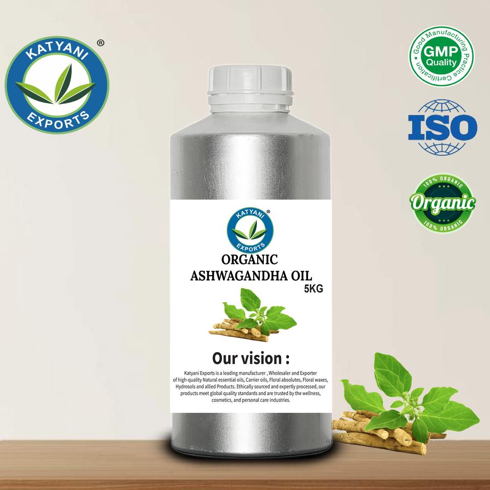 น้ำมันอัชวากันธาออร์แกนิกสกัดจากรากวิธาเนีย ซอมนิเฟอรา ผสมสมุนไพร ได้รับการรับรองจาก USDA ระดับบำบัดโรค ผลิตโดยผู้ผลิตขนาดใหญ่