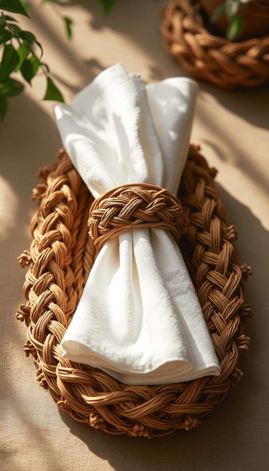 ห่วงผ้าเช็ดปากหวายถักอินทรีย์ที่ออกแบบมาสำหรับห้องครัวในฟาร์มและบ้านที่ใส่ใจสิ่งแวดล้อมเพื่อค้นหาความสง่างามเหนือกาลเวลา