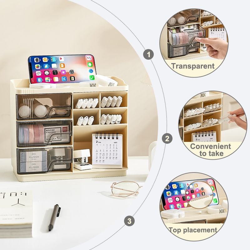 กล่องจัดระเบียบอเนกประสงค์สำหรับโต๊ะทำงาน/สำนักงาน วัสดุพลาสติก