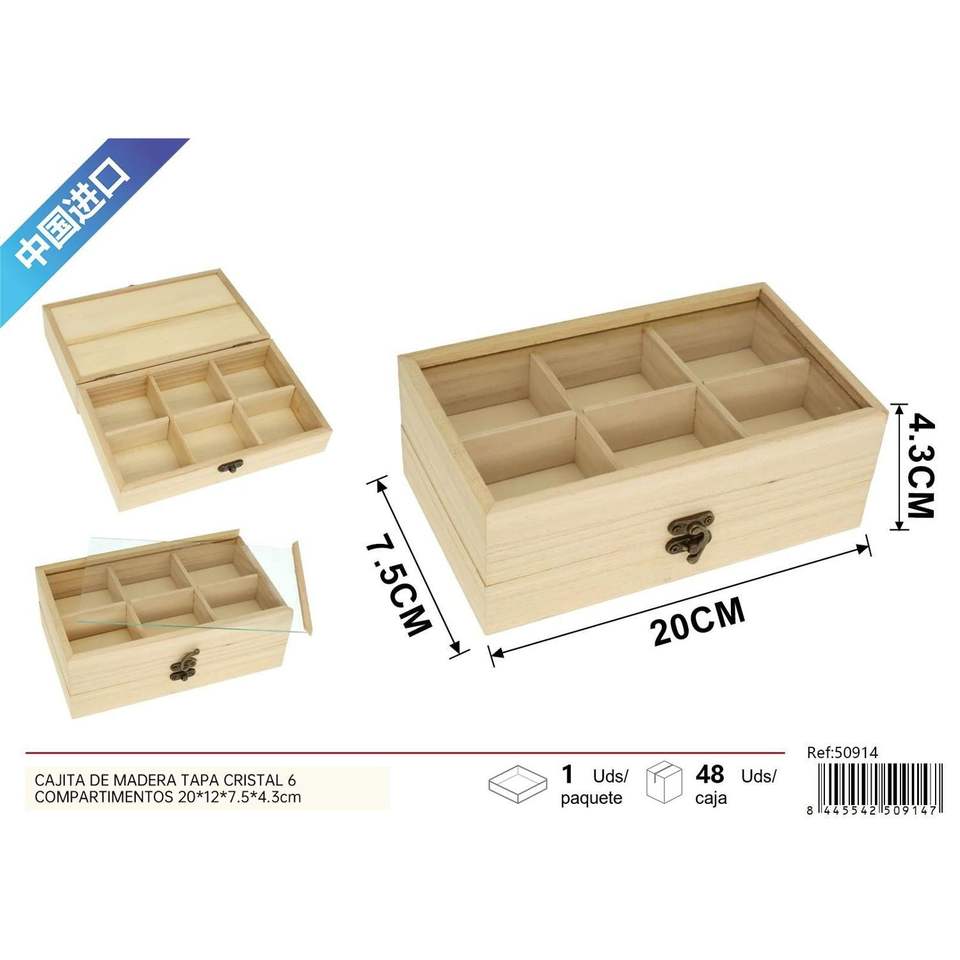 ช่องเก็บของจัดระเบียบ6ช่องพร้อมฝาแก้วทำจากไม้20x12x7.5x4.3ซม. เพื่อการจัดเก็บที่มีประสิทธิภาพ