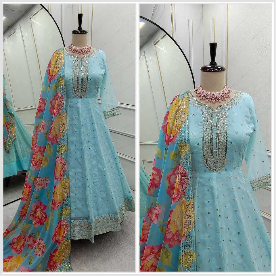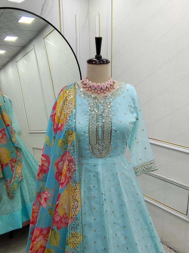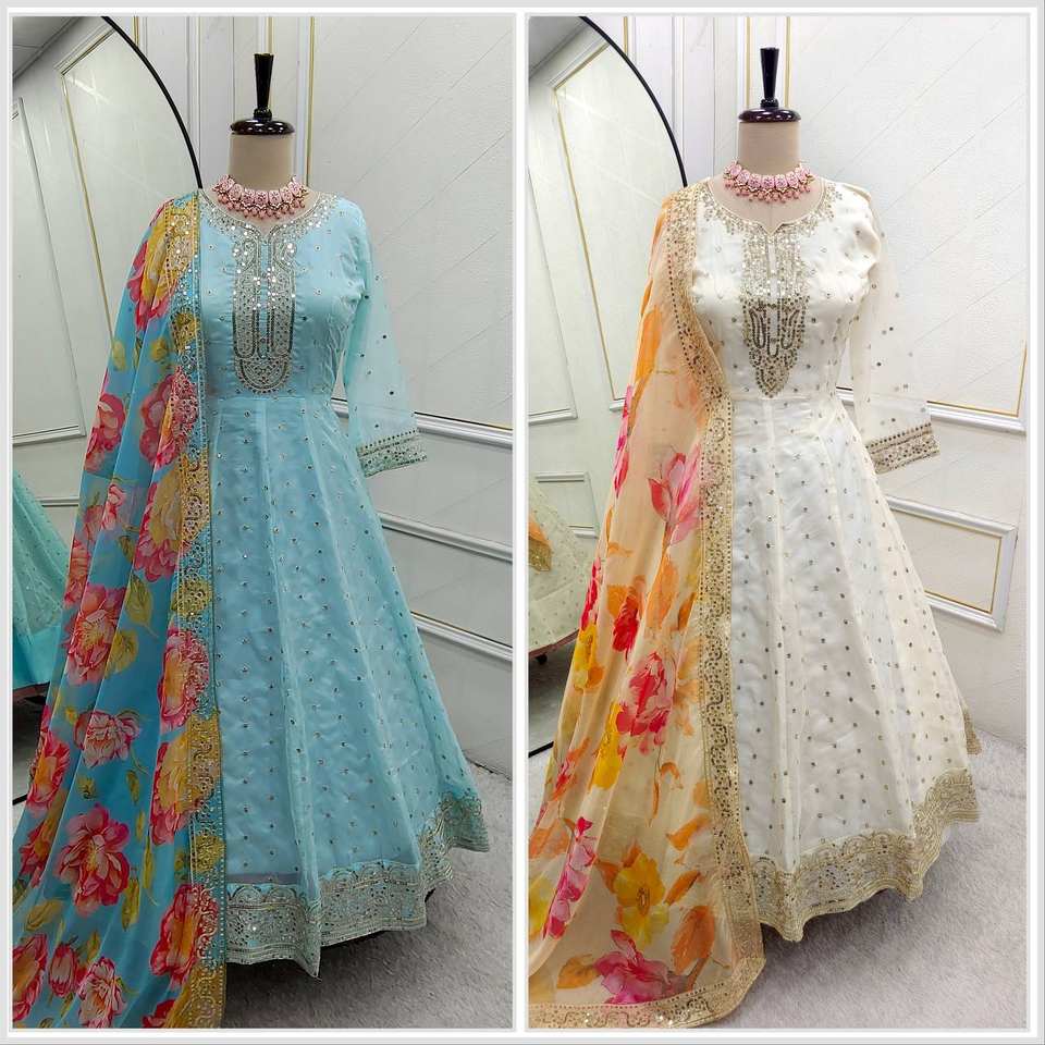 ชุด pent and dupatta ออร์แกนซ่าอนาร์คาลิเย็บพร้อมใส่สินค้าจำนวนมากทำด้วยมือ