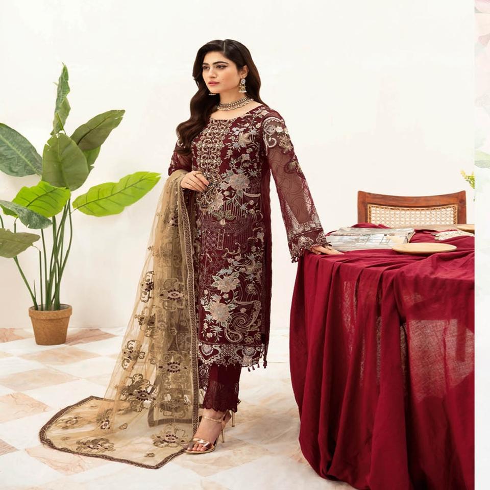 Ramsha ชุด M-10 Organza คอลเลกชัน3ชิ้น, ชุดปาร์ตี้ปากีสถานสำหรับผู้หญิงยาว salwar และสาวชุดแต่งงานชุดเทศกาล