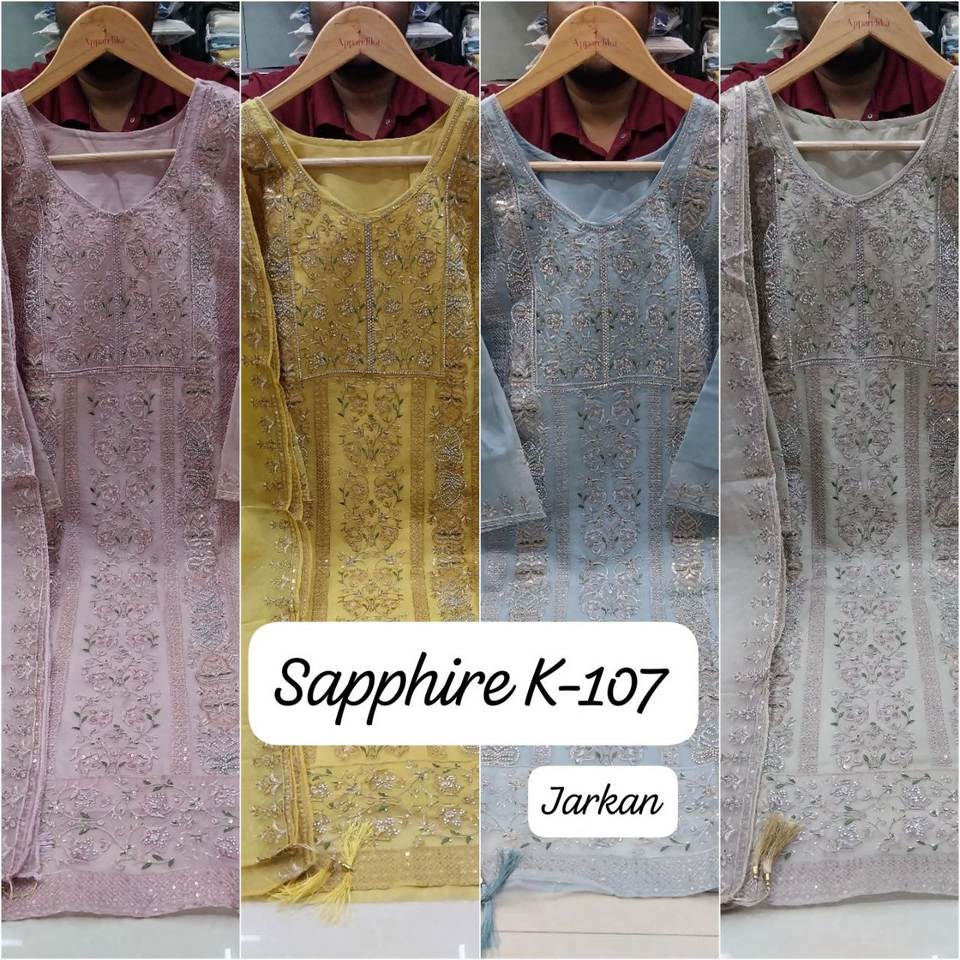 ชุดปากีสถานปักลายออร์แกนซ่าพร้อมแขนยาวปักลายจาร์กันอย่างดี พร้อมผ้าคลุมไหล่พิมพ์ลายดิจิทัลและผ้าออร์แกนซ่าอย่างหนา