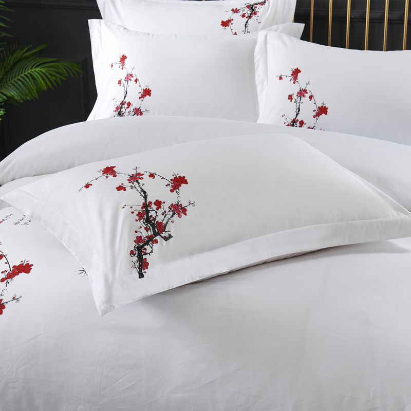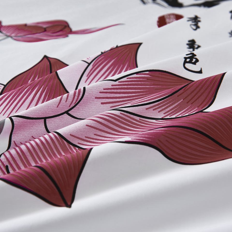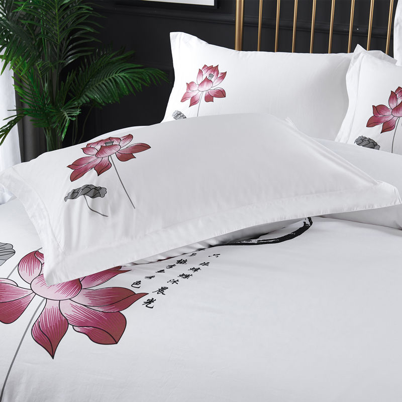 ชุดเครื่องนอนลายดอกบัวสวยงามแบบตะวันออกชุดคลุมผ้านวมพิมพ์ลายงานฝีมือระดับพรีเมียมชุดโรงแรม