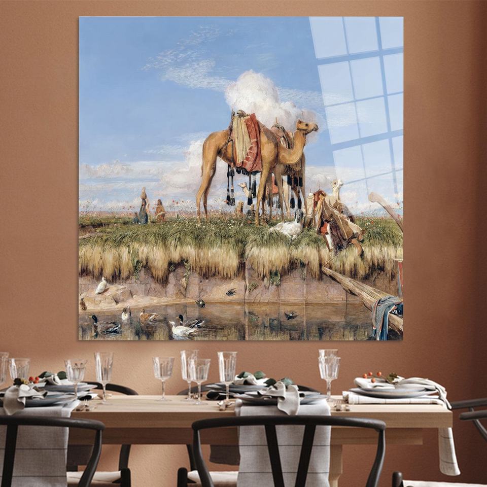 ภาพพิมพ์บนผ้าใบลายคาราวานอูฐสไตล์โอเรียนทัลลิสต์: ศิลปะตกแต่งผนังภูมิทัศน์ทะเลทราย, ศิลปะบนกระจกนิรภัย