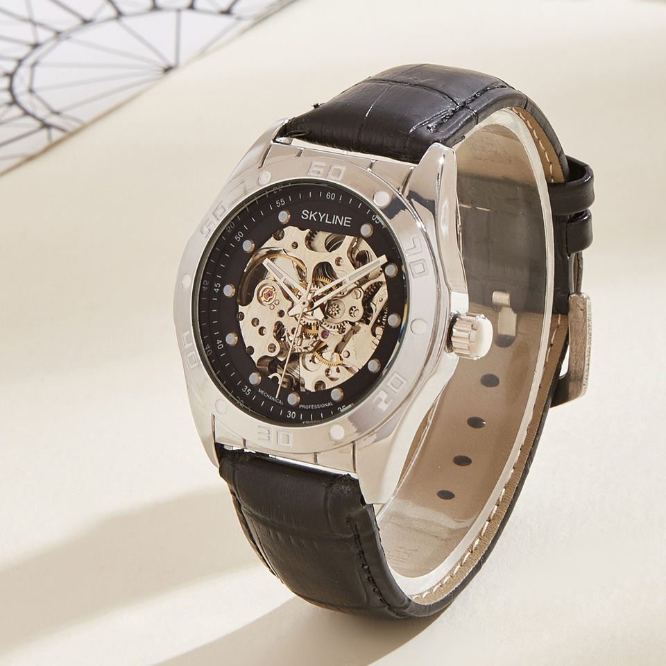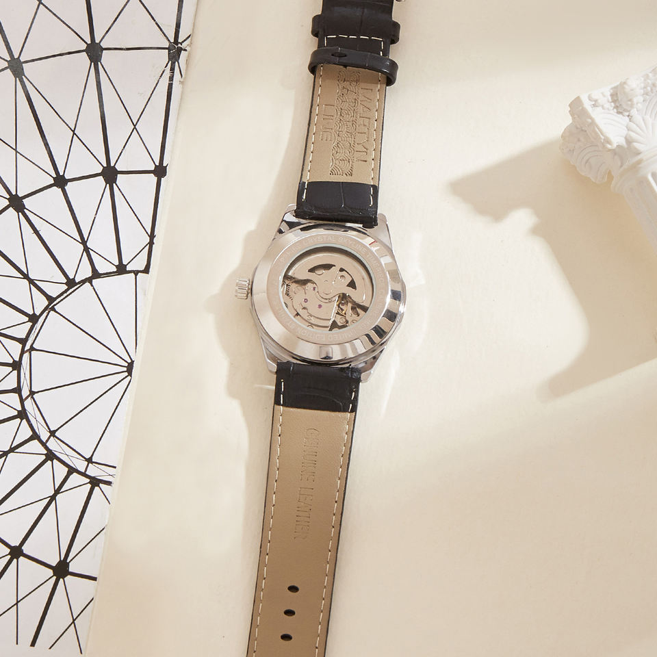 Oriented Luxury Automatic Mechanical Watch Stainless Steel 24mm Leather Strap Alloy Hollow Day Glass Pointer for Business Sports