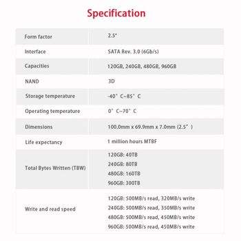 Capacity:120GB/240GB/480GB/960GB