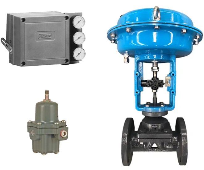 วาล์ว Emerson Fisher รุ่น 3582i ของแท้ใหม่เอี่ยม พร้อมตัวควบคุมตำแหน่ง และวาล์วลดแรงดัน 67CFR