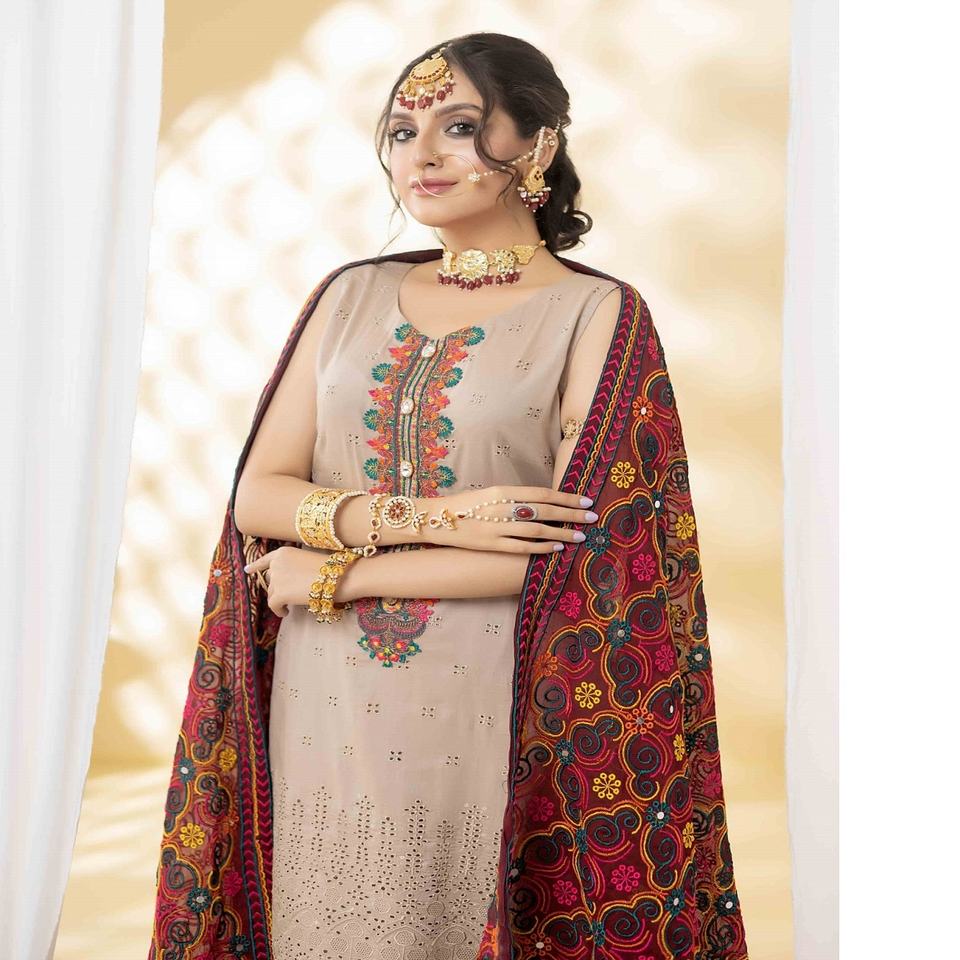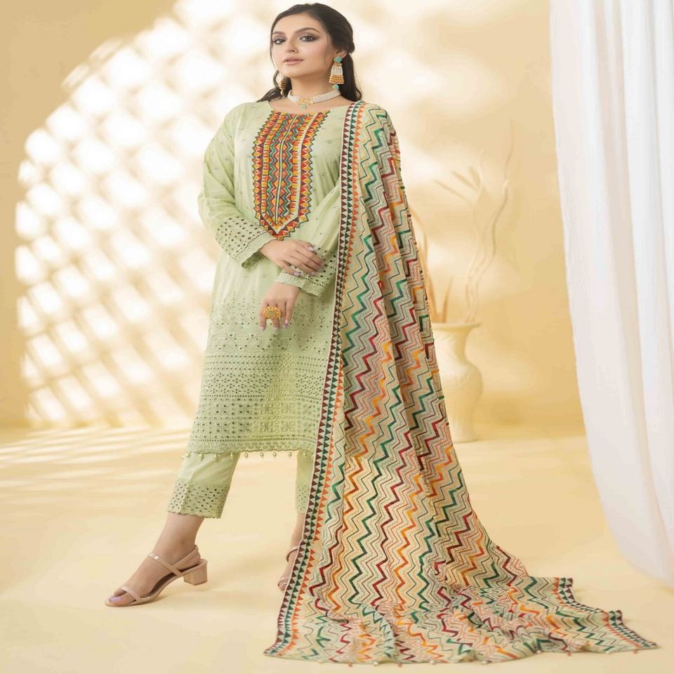 ชุดสนามหญ้า3ชิ้นผ้าคอตตอนแท้ของปากีสถานแผ่นแปะ chikankari ทำงานโดย Mi creation shahkar สำหรับปาร์ตี้สวมใส่สำหรับอินเดีย