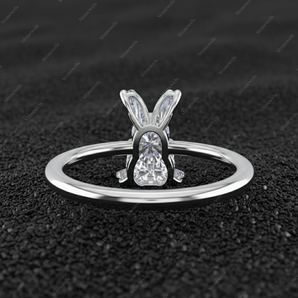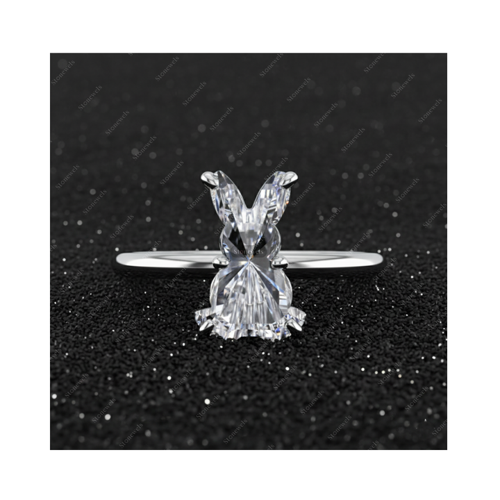 Solid Lab Grown Bunny Standing Shape Diamond Ring