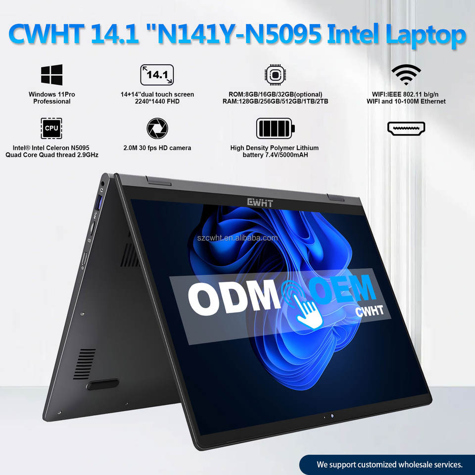 Celeron แล็ปท็อปขนาด14นิ้วของแท้สำหรับธุรกิจวินโดว์11 Pro 2.2K HD N5095เซลเลอรอน16GB DDR4แรม32GB + 1TB SSD Office Portable LAPTOP