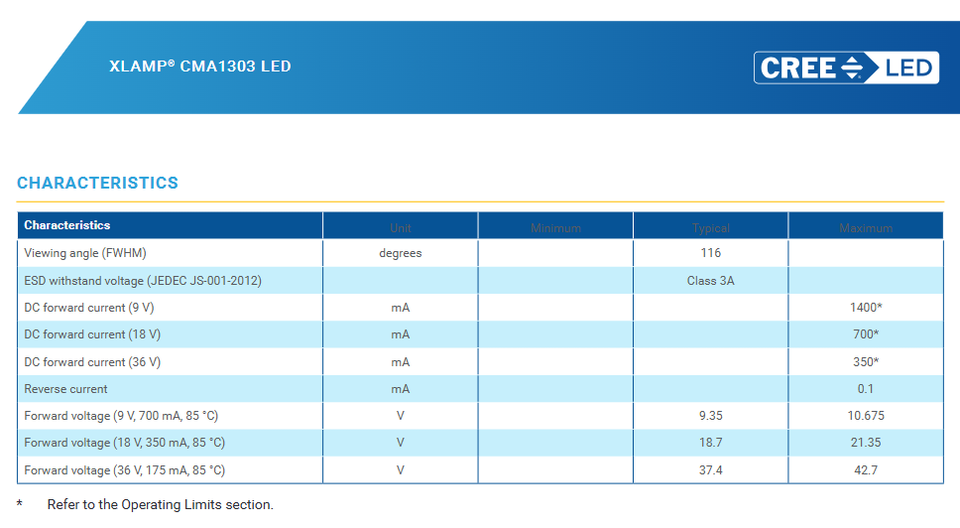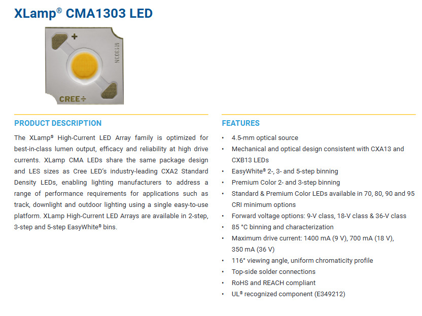 XLamps CMA1303 LED 9V 18V 36V